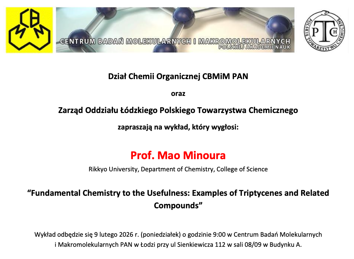 Zarząd Oddziału Łódzkiego PTChem zaprasza na wykład Prof. Mao Minoura  Rikkyo University, Department of Chemistry