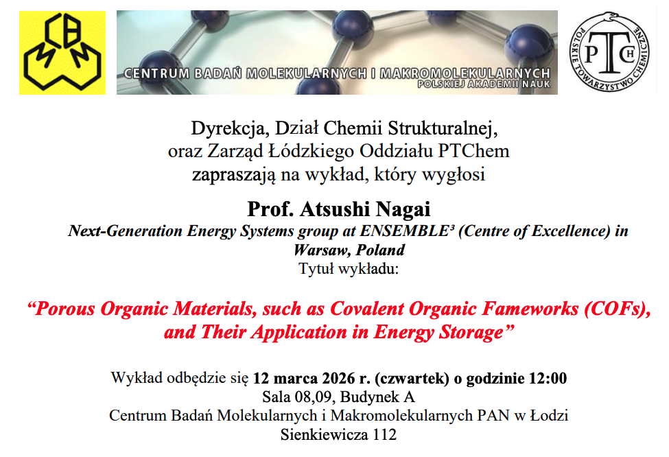 Zarząd Oddziału Łódzkiego PTChem zaprasza na wykład Prof. Atsushi Nagai  Next-Generation Energy Systems group at ENSEMBLE