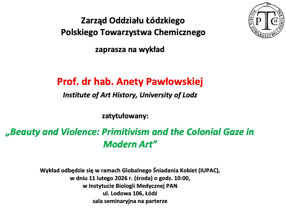 Zarząd Oddziału Łódzkiego PTChem zaprasza na wykład Prof. dr hab. Anety Pawłowskiej  Institute of Art History, University of Lodz